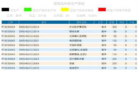 生產完成率及品質檢驗狀態看板